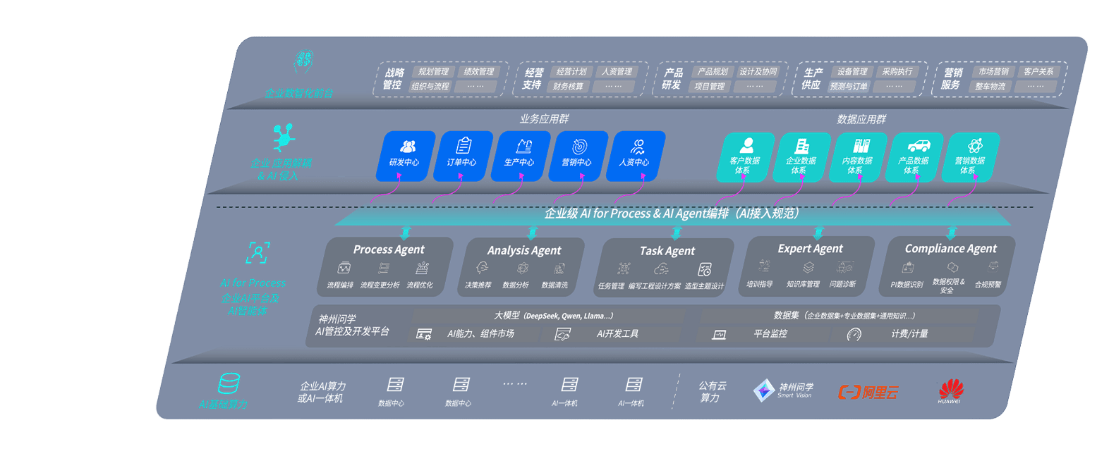 端到端的一站式AI工作空间深度融合了从企业战略规划到日常经营的全流程业务板块,,,定向解决车企内部领域多、、、部门多、、、、链条长、、、、场景碎片化等难题,,支持车企快速构建以AI为核心的生产力写作体系,,,,实现任务执行与AI能力的无缝集成与交互